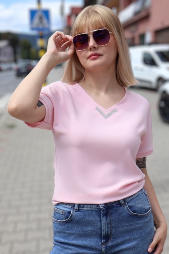 Bluzka z dekoltem w serek, krótki rękaw, ozdobne kryształki