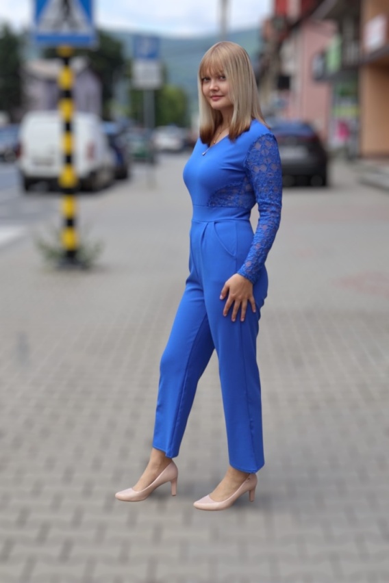 Ten niebieski kombinezon to idealne połączenie kobiecej delikatności i klasycznej elegancji. Sprawdzi się zarówno na wyjątkowe okazje, jak i na bardziej formalne spotkania. Intensywny odcień przyciąga spojrzenia, a dopracowany krój pięknie podkreśla sylwetkę.