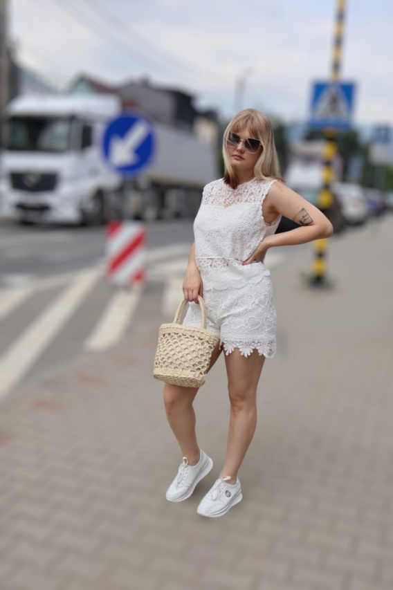Lekkie, przewiewne i kobiece – te białe spodenki wykonane z delikatnej gipiurowej koronki to idealna propozycja na lato. Ich romantyczny, boho styl doskonale sprawdzi się zarówno na wakacjach, jak i na co dzień w upalne dni.