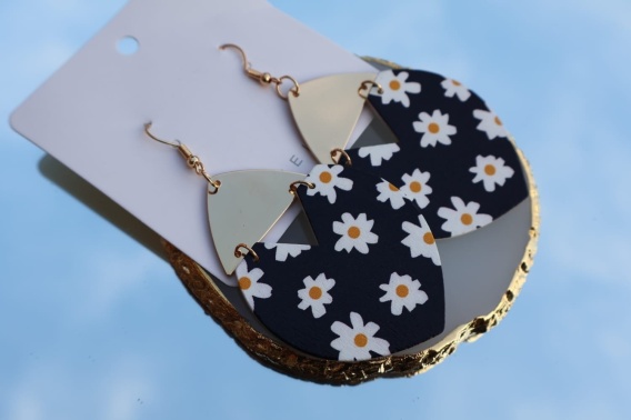 Czarne, drewniane kolczyki wiszące z motywem stokrotki to propozycja dla kobiet, które kochają prostotę z charakterem. Łączą naturalny materiał z wyrazistym designem — są surowe, ale zarazem subtelne, delikatne, a jednocześnie mocne. To akcent, który nie potrzebuje wielu słów, by przyciągnąć uwagę.