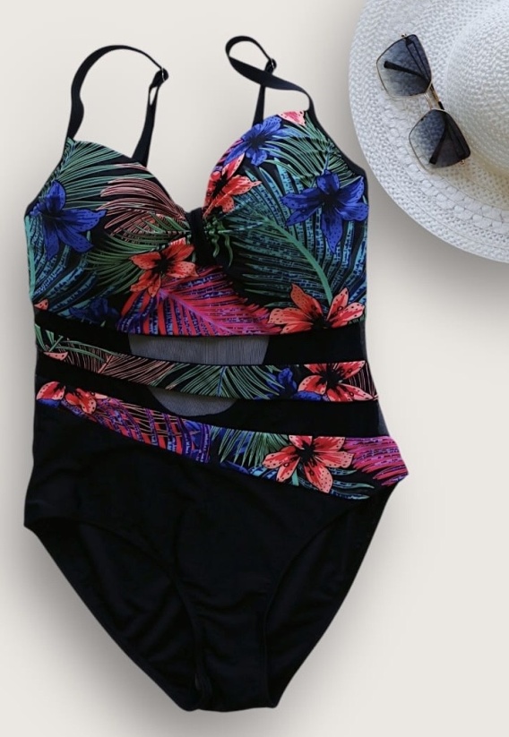 Kostium kąpielowy jednoczęściowy, motyw kwiatowy