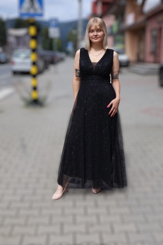 Olśniewająca sukienka tiulowa w klasycznym, czarnym kolorze to idealna propozycja na wyjątkowe okazje! Jej kobiecy fason, delikatny połysk oraz subtelna lekkość materiału sprawią, że nie przejdziesz niezauważona. To sukienka, która łączy w sobie klasę, romantyzm i nowoczesną elegancję.